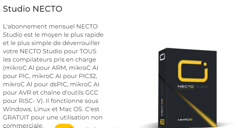On peut ajouter des cartes de développement complète avec des micros et des interfaces. Sur les cartes de développement de MIKROE, on peut ajouter des Voici le produit MIKROE qui est détaillé sur leur site électronique.
