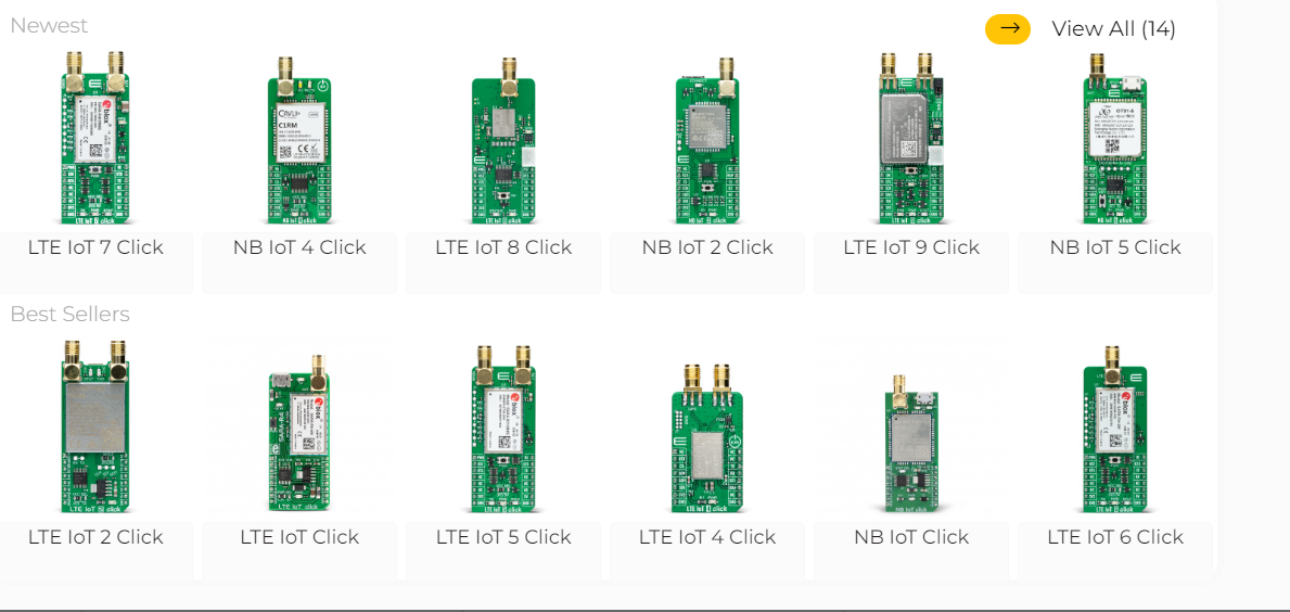 On commence par une série de click board qui sont des modules électroniques qui vous permettent de créer beaucoup d'interface en électronique.